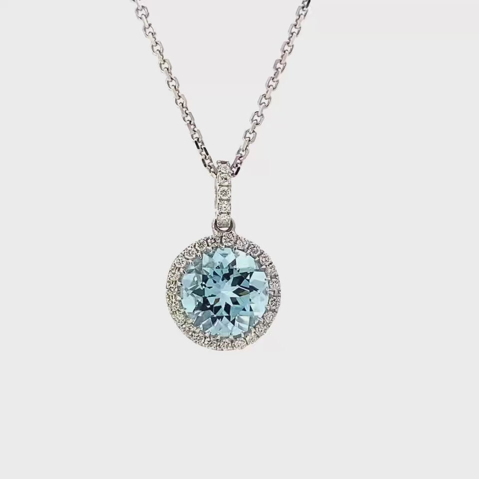 18ct white gold Aquamarine and diamond pendant.