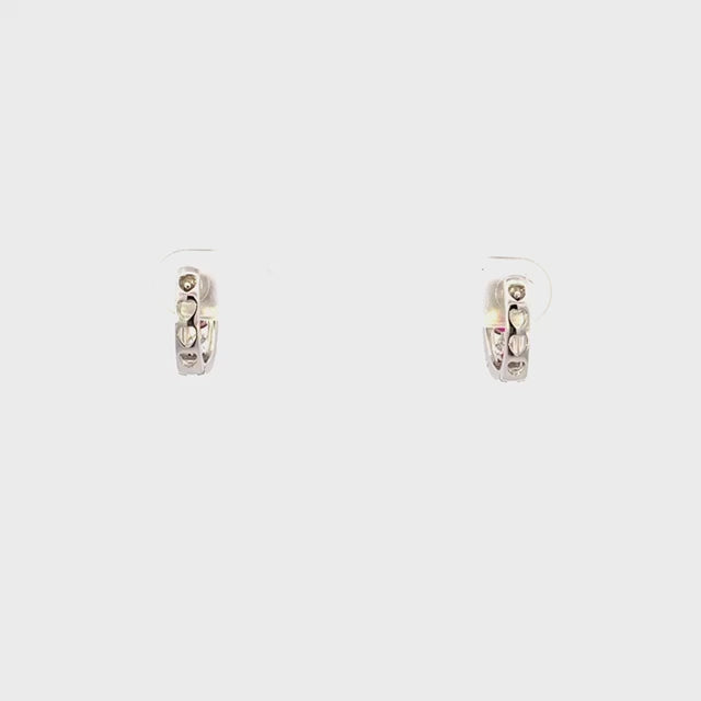 18ct white gold natural ruby and diamond 'huggie' style earrings.